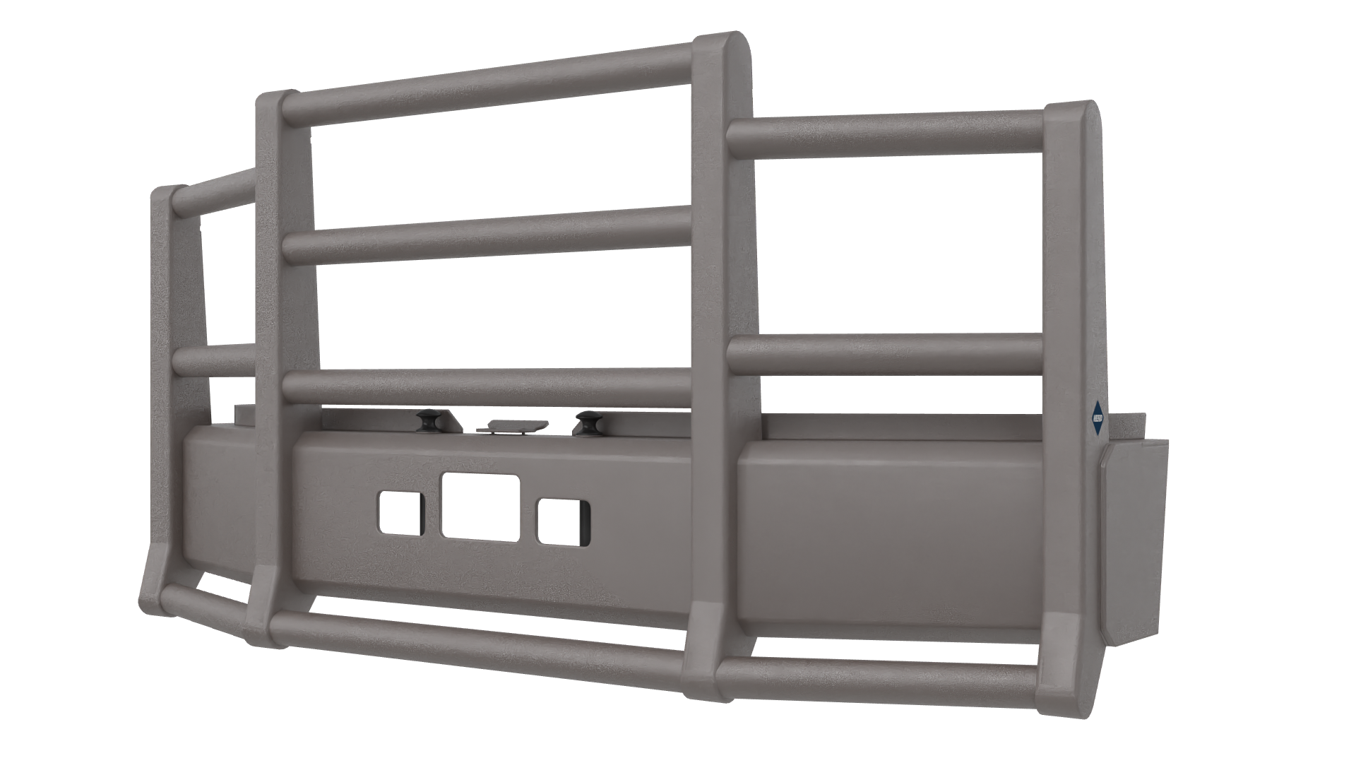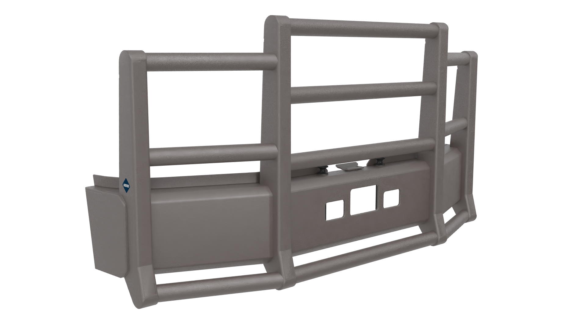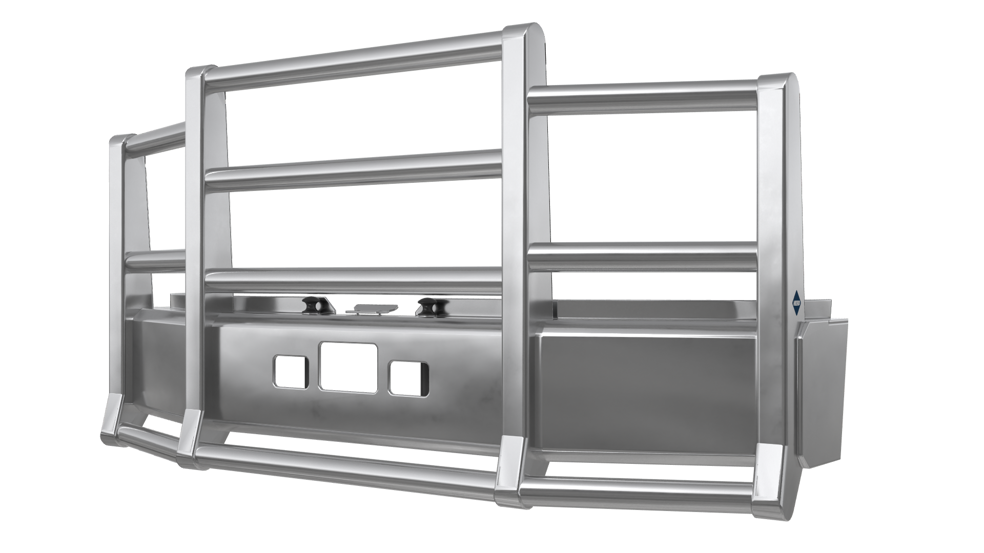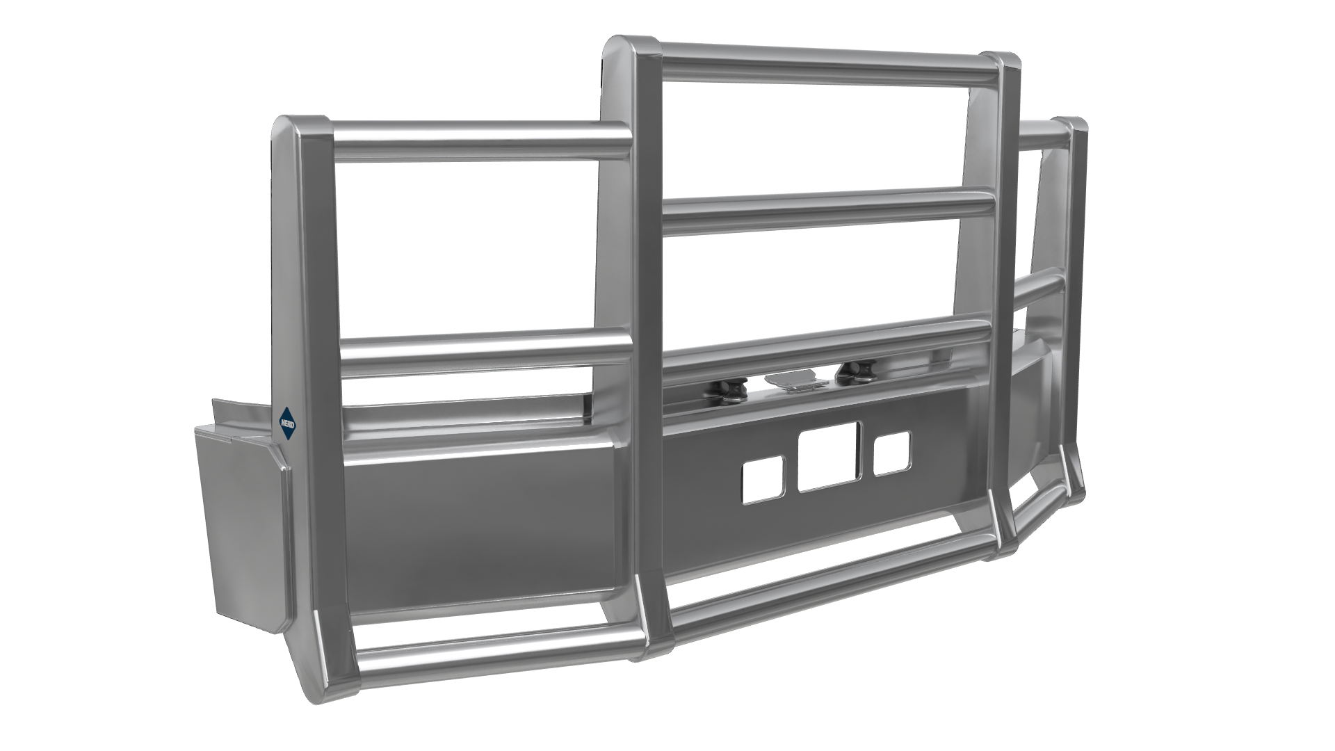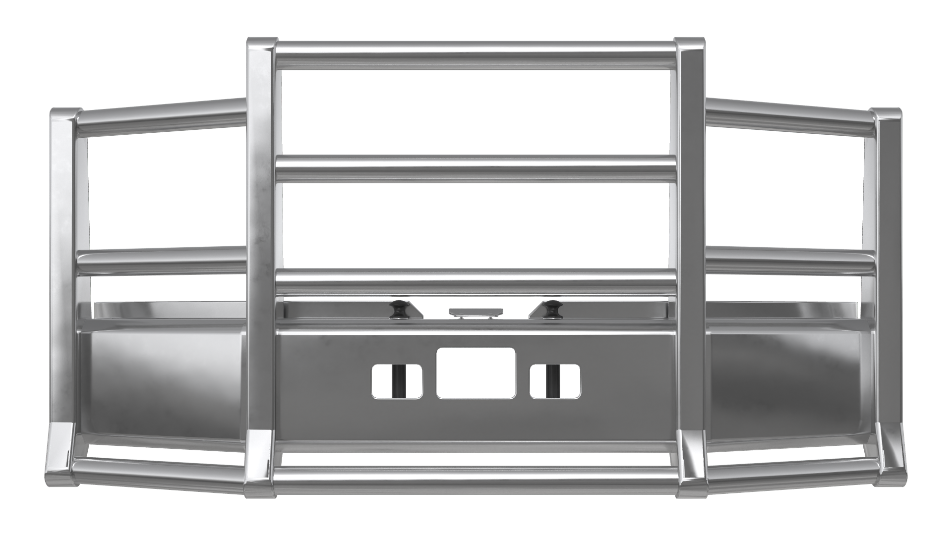 The best protection against unwanted downtime, expensive repairs, and lost contracts, the Defender guards your asset and keeps you on the road. It comes standard with fully boxed-in uprights, 3-inch tubes, a lower rake, and HERD’s signature mirror polish finish. The Defender can function as a brush guard, deer guard, and moose bumper and features HERD’s exclusive impact plates to protect against folding in from the outside if an impact is made off-center. It can be ordered without the lower rake and has options for HERD’s Slam Latch, Lift Assist, and signal lights. Protect your vehicle and your bottom line.