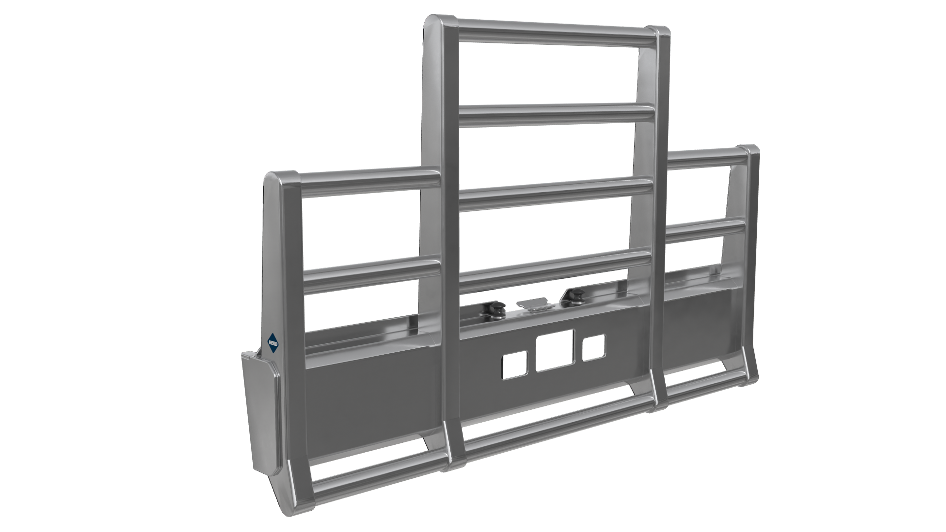 The best protection against unwanted downtime, expensive repairs, and lost contracts, the Defender guards your asset and keeps you on the road. It comes standard with fully boxed-in uprights, 3-inch tubes, a lower rake, and HERD’s signature mirror polish finish. The Defender can function as a brush guard, deer guard, and moose bumper and features HERD’s exclusive impact plates to protect against folding in from the outside if an impact is made off-center. It can be ordered without the lower rake and has options for HERD’s Slam Latch, Lift Assist, and signal lights. Protect your vehicle and your bottom line.