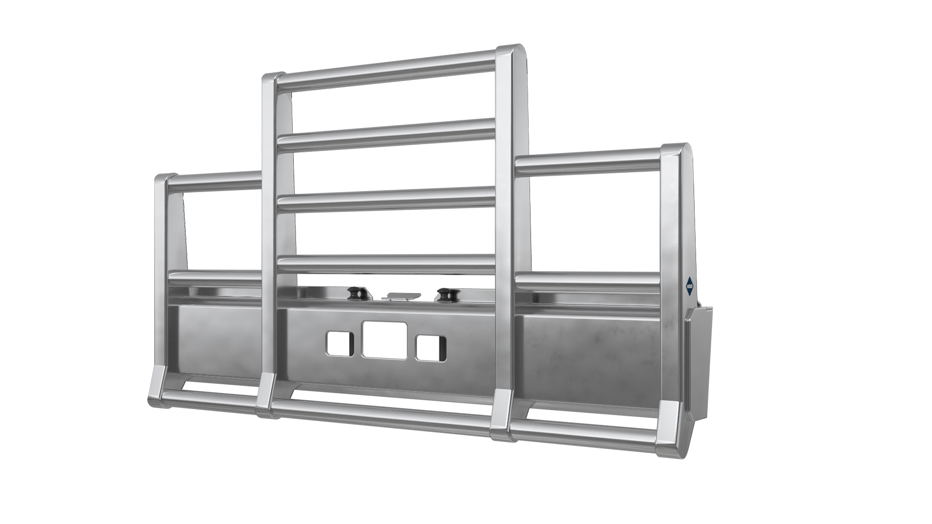 The best protection against unwanted downtime, expensive repairs, and lost contracts, the Defender guards your asset and keeps you on the road. It comes standard with fully boxed-in uprights, 3-inch tubes, a lower rake, and HERD’s signature mirror polish finish. The Defender can function as a brush guard, deer guard, and moose bumper and features HERD’s exclusive impact plates to protect against folding in from the outside if an impact is made off-center. It can be ordered without the lower rake and has options for HERD’s Slam Latch, Lift Assist, and signal lights. Protect your vehicle and your bottom line.