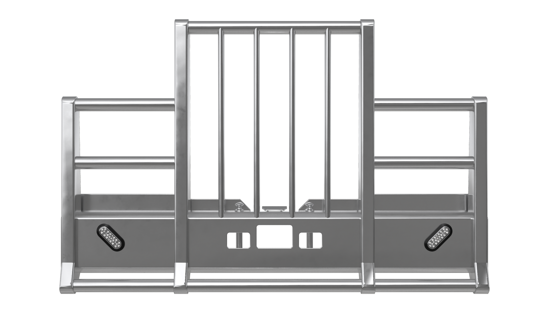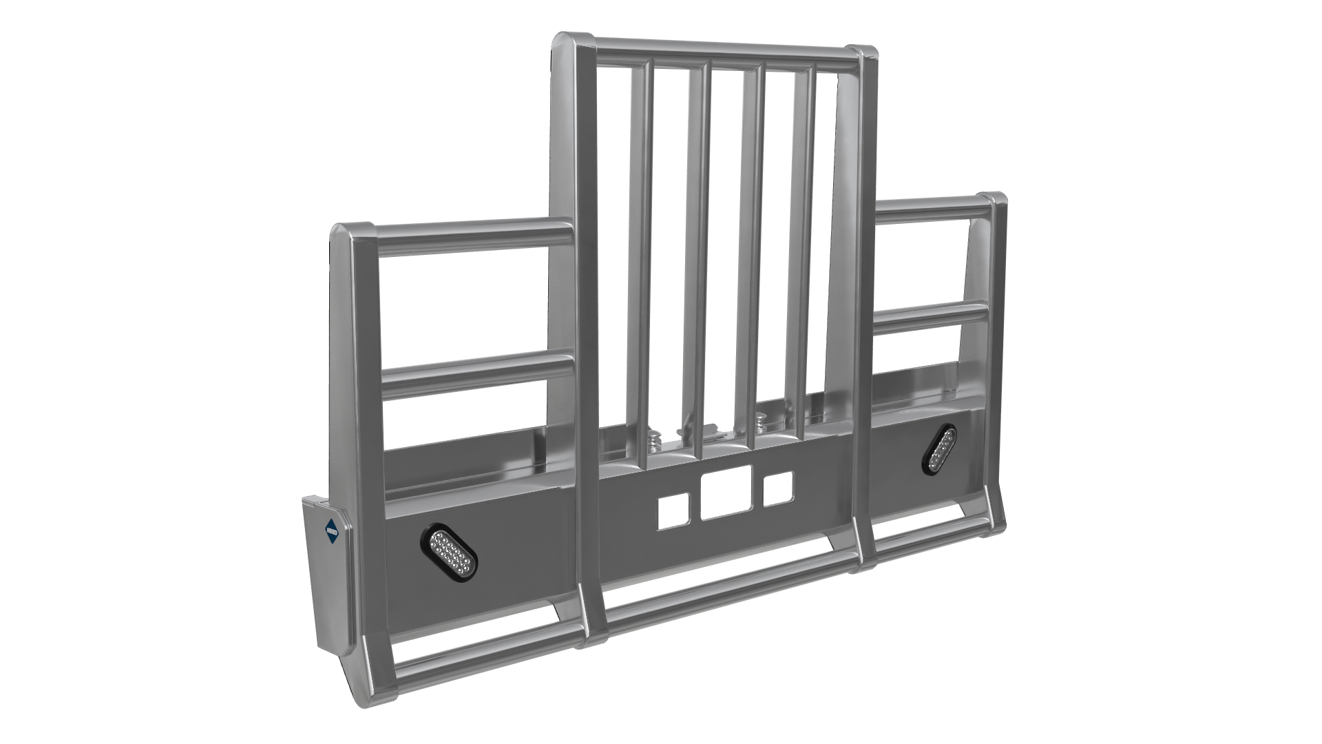 The best protection against unwanted downtime, expensive repairs, and lost contracts, the Defender guards your asset and keeps you on the road. It comes standard with fully boxed-in uprights, 3-inch tubes, a lower rake, and HERD’s signature mirror polish finish. The Defender can function as a brush guard, deer guard, and moose bumper and features HERD’s exclusive impact plates to protect against folding in from the outside if an impact is made off-center. It can be ordered without the lower rake and has options for HERD’s Slam Latch, Lift Assist, and signal lights. Protect your vehicle and your bottom line.