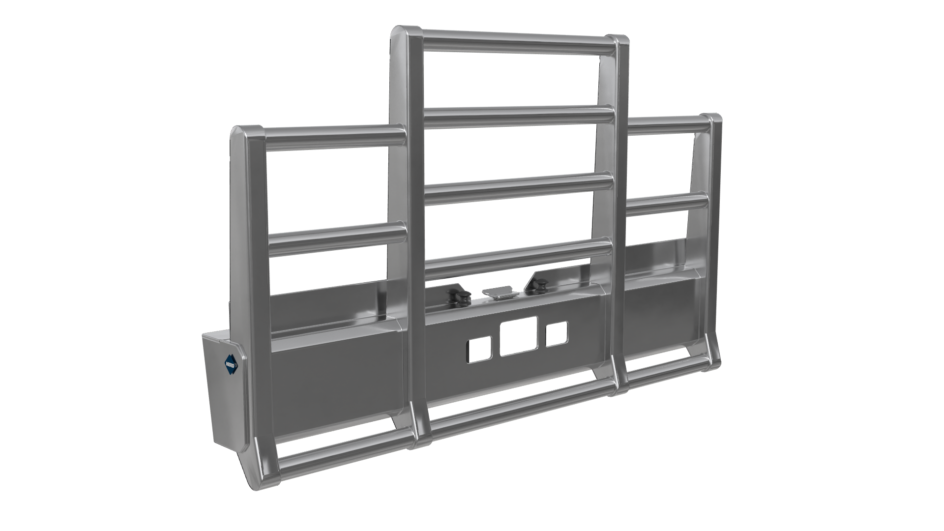 The best protection against unwanted downtime, expensive repairs, and lost contracts, the Defender guards your asset and keeps you on the road. It comes standard with fully boxed-in uprights, 3-inch tubes, a lower rake, and HERD’s signature mirror polish finish. The Defender can function as a brush guard, deer guard, and moose bumper and features HERD’s exclusive impact plates to protect against folding in from the outside if an impact is made off-center. It can be ordered without the lower rake and has options for HERD’s Slam Latch, Lift Assist, and signal lights. Protect your vehicle and your bottom line.