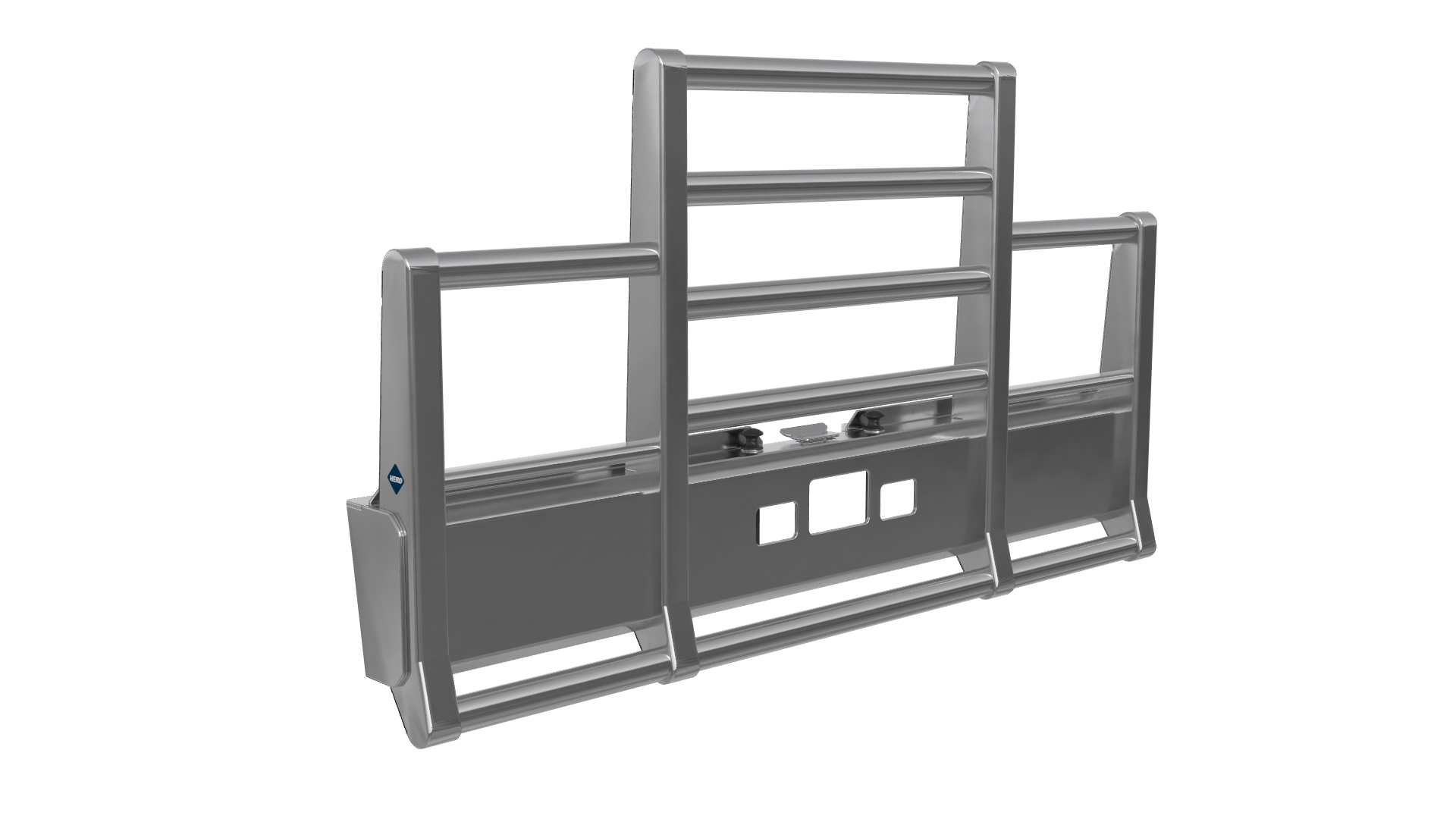 The best protection against unwanted downtime, expensive repairs, and lost contracts, the Defender guards your asset and keeps you on the road. It comes standard with fully boxed-in uprights, 3-inch tubes, a lower rake, and HERD’s signature mirror polish finish. The Defender can function as a brush guard, deer guard, and moose bumper and features HERD’s exclusive impact plates to protect against folding in from the outside if an impact is made off-center. It can be ordered without the lower rake and has options for HERD’s Slam Latch, Lift Assist, and signal lights. Protect your vehicle and your bottom line.