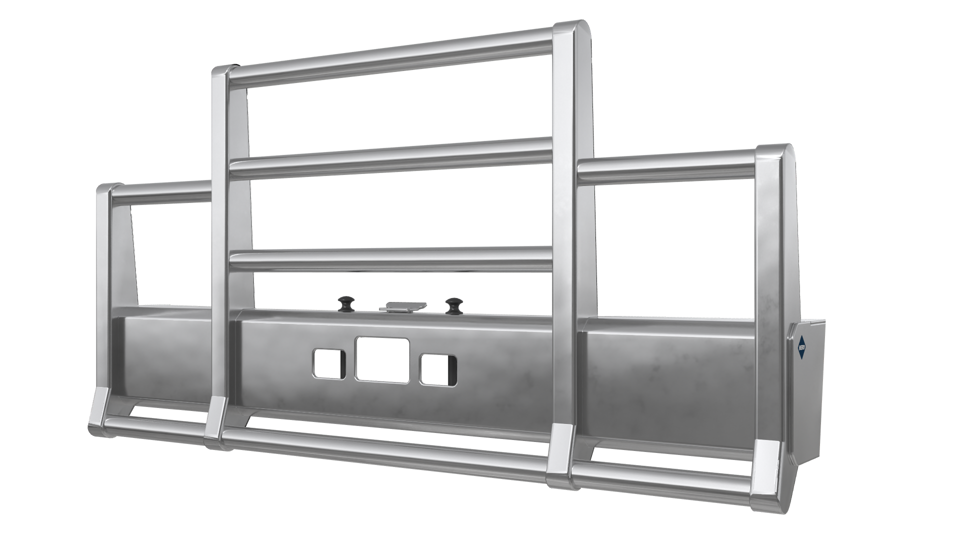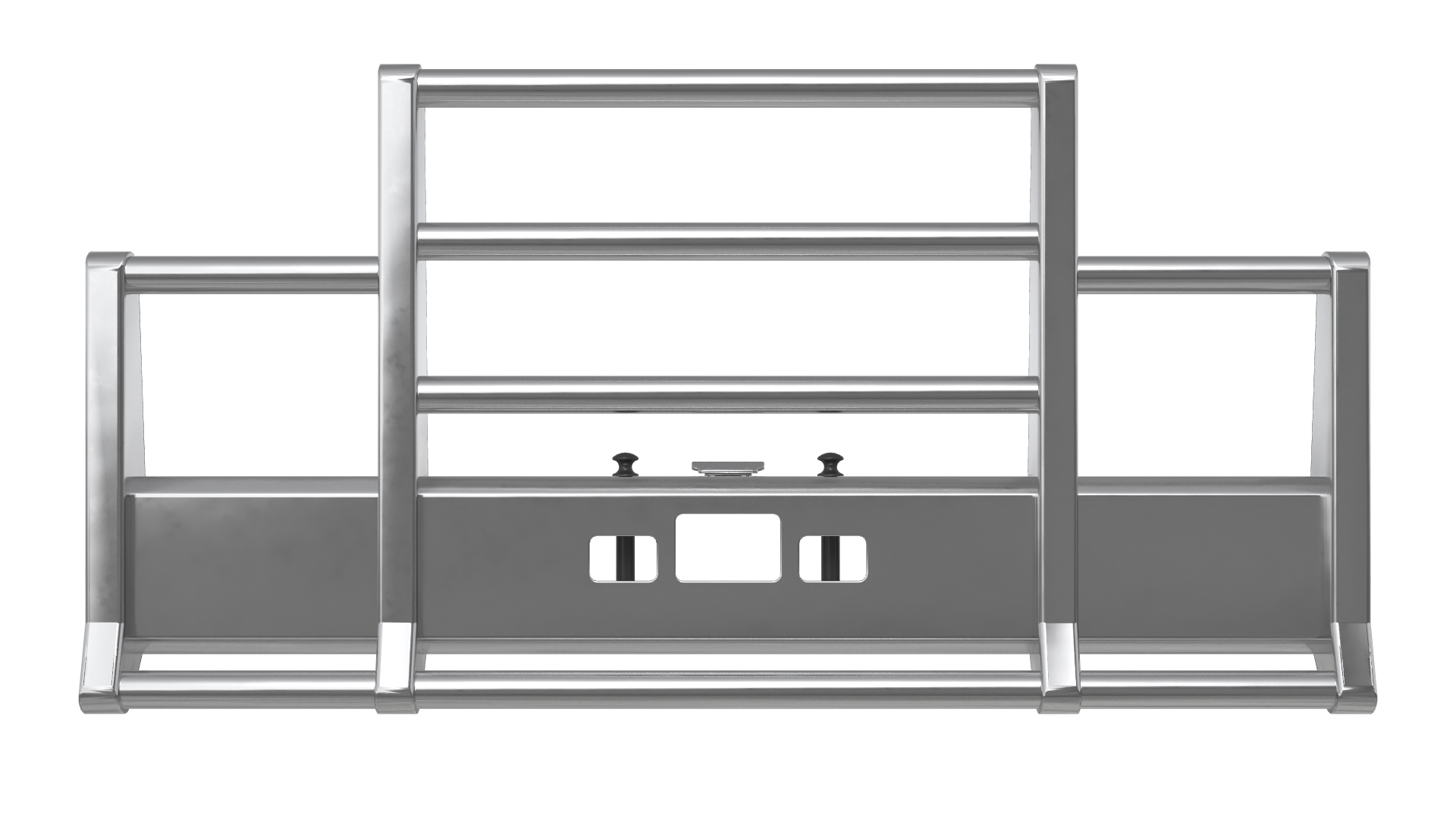 The best protection against unwanted downtime, expensive repairs, and lost contracts, the Defender guards your asset and keeps you on the road. It comes standard with fully boxed-in uprights, 3-inch tubes, a lower rake, and HERD’s signature mirror polish finish. The Defender can function as a brush guard, deer guard, and moose bumper and features HERD’s exclusive impact plates to protect against folding in from the outside if an impact is made off-center. It can be ordered without the lower rake and has options for HERD’s Slam Latch, Lift Assist, and signal lights. Protect your vehicle and your bottom line.
